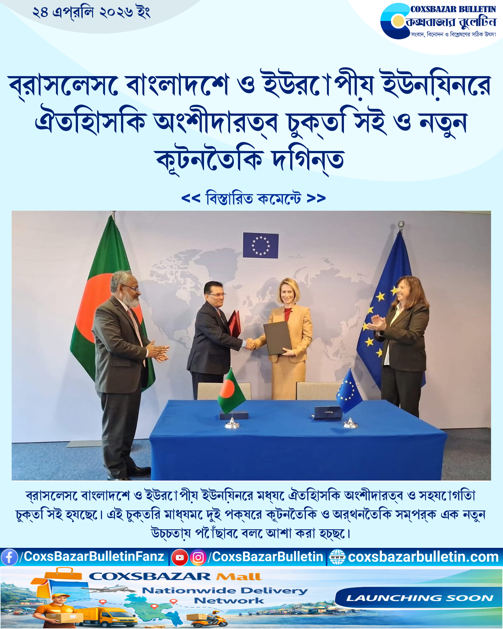 ব্রাসেলসে বাংলাদেশ ও ইউরোপীয় ইউনিয়নের মধ্যে ঐতিহাসিক অংশীদারত্ব ও সহযোগিতা চুক্তি সই হয়েছে। এই চুক্তির মাধ্যমে দুই পক্ষের কূটনৈতিক ও অর্থনৈতিক সম্পর্ক এক নতুন উচ্চতায় পৌঁছাবে বলে আশা করা হচ্ছে।